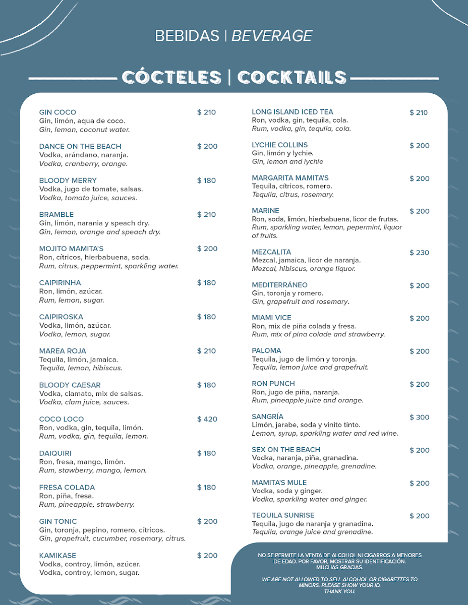 Mamita's Beach Club Menu (2025 Update)